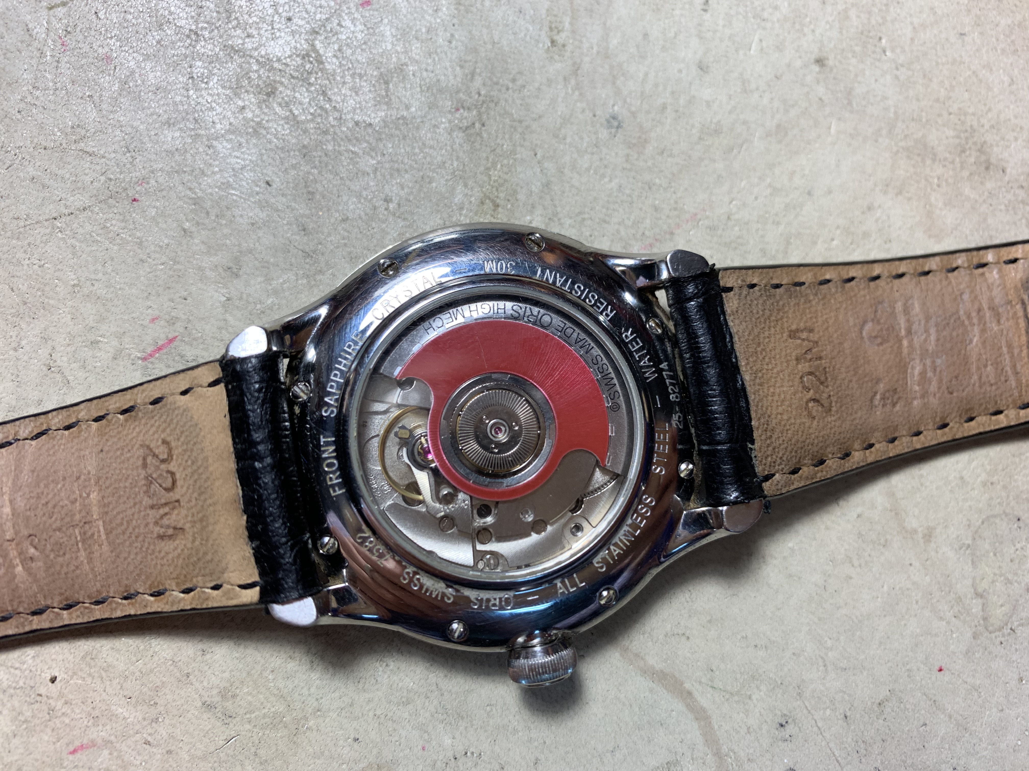 Корпус и браслет: очистить с мылом и горячей водой, удалить грязь старой зубной щеткой или в ультразвуковой ванне.
