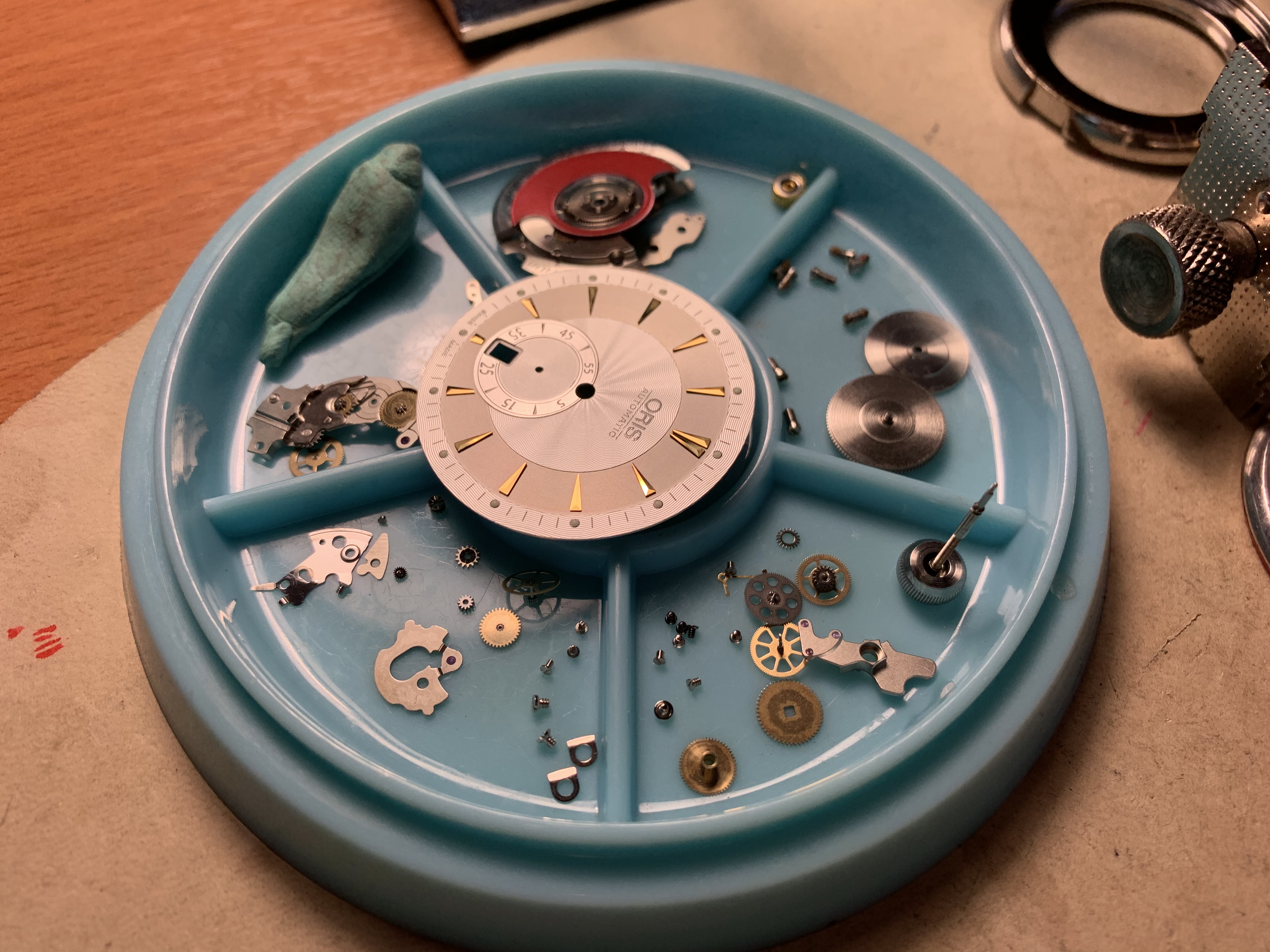 Циферблат: используйте Rodico, чтобы снять грязь с циферблата. Любая ржавчина на задней стороне циферблата может быть счищена щеткой из стекловолокна, но будьте осторожны, чтобы кусочки стекловолокна не пометили переднюю часть.