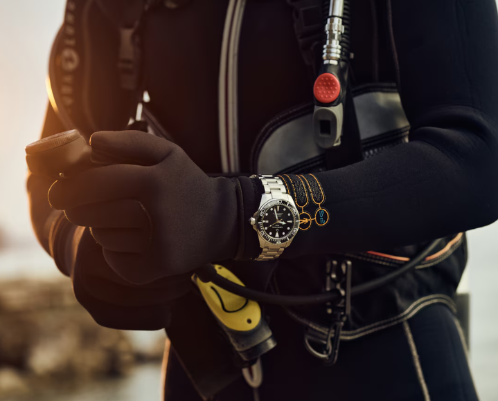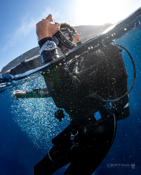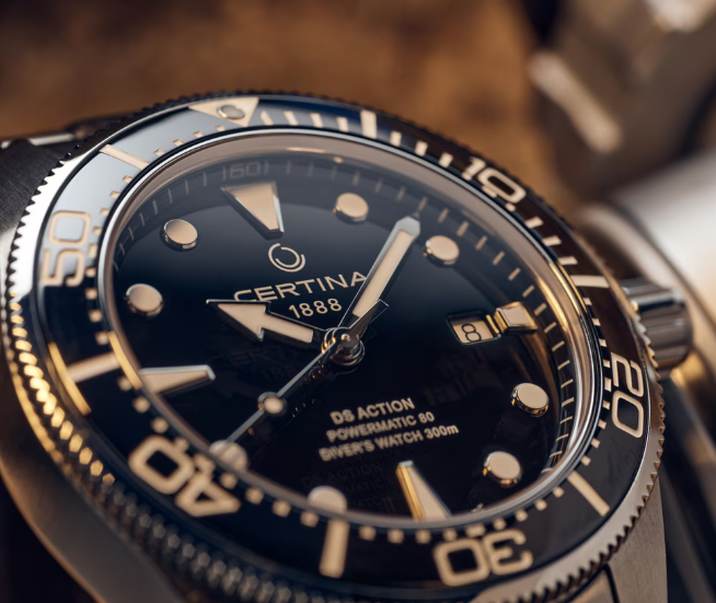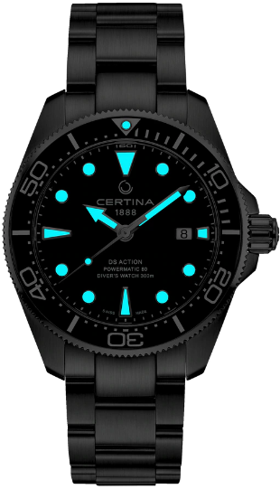 В XXI-м веке к часам предъявляются высокие требования. Дорогие наручные часы должны быть лучшими во всех отношениях – с точки зрения стиля, надежности и точности хода. Новая модель популярной коллекции DS Action Diver швейцарской марки Certina несомненно станет победителем этой гонки. Дайверские часы диаметром 43 мм отличаются классическим вневременным дизайном, водонепроницаемостью до 300 м и современным автоматическим калибром с пружиной, обладающей антимагнитными свойствами. Для корпуса, браслетов и застежек своих часов марка Certina использует нержавеющую сталь 316L, отличающуюся повышенной износостойкостью, устойчивостью к коррозии и гигиеничностью. В стали содержится совсем небольшое количество никеля, поэтому этот материал не вызывает аллергии при носке. Керамика, используемая в часовом искусстве, обжигается при температуре более 900 °C, что обеспечивает ее высокую прочность. Керамические безели, кабюшоны и детали браслетов марки Certina имеют не только красивый внешний вид, но обладают устойчивостью к царапинам, гипоаллергенностью и способностью долгое время сохранять первоначальную яркость и блеск. Super-LumiNova (SLN) представляет собой cветящийся материал с фосфоресцирующими свойствами. В темноте SLN типа BG W9, который использует Certina, испускает свет в виде голубого мерцания. SLN не вредит здоровью и используется для нанесения на стрелки, индексы и безели. В темноте он через некоторое время теряет свои фосфоресцирующие свойства, но они автоматически восстанавливаются на свету. Сапфировое стекло состоит из порошка оксида алюминия (Al2O3), раскаленного до 2.000 °C. Получаемые в результате сапфировые пласты нарезаются на тонкие пластины, им придают требуемую форму и полируют. Сапфир абсолютно прозрачен, обладает высокой устойчивостью к царапинам и механическим повреждениям. По этим причинам сапфировое стекло стало неотъемлемой деталью концепции DS и используется во всех моделях Certina для защиты циферблата. Вес нетто 205 гр. Стекло сапфировое сдносторонним антибликовым покрытием. Водонепроницаемость до 300 метров. Часы для дайверов, разработанные в соответствии со стандартом ISO 6425:2018, водонепроницаемость до глубины 300 м . Диаметр корпуса 43 мм. Толщина 13.1 мм. Между креплениями 21 мм. Механизм ETA POWERMATIC 80.611 с запасом хода 80 часов и сплавом Nivachron. Запас хода показывает количество времени, которое могут идти механические часы без подзавода. Большинство часов имеют запас хода около 38-42 часов. Powermatic 80, инновационный автоматический калибр Certina имеет запас хода до 80 часов – почти в два раза больше, чем у сопоставимых моделей. Спирали баланса созданы из инновационного титанового сплава. Этот революционный материал был создан при сотрудничестве с компанией Swatch Group и используется лишь ограниченным числом брендов. Пружины Nivachron обладают повышенной устойчивостью к воздействию электромагнитных полей, ударам, старению материалов, экстремальному перепаду температур, выводят часы на совершенно новый уровень точности и обеспечивают долговечность аксессуара. Удлинение для надевания часов на гидрокостюм.